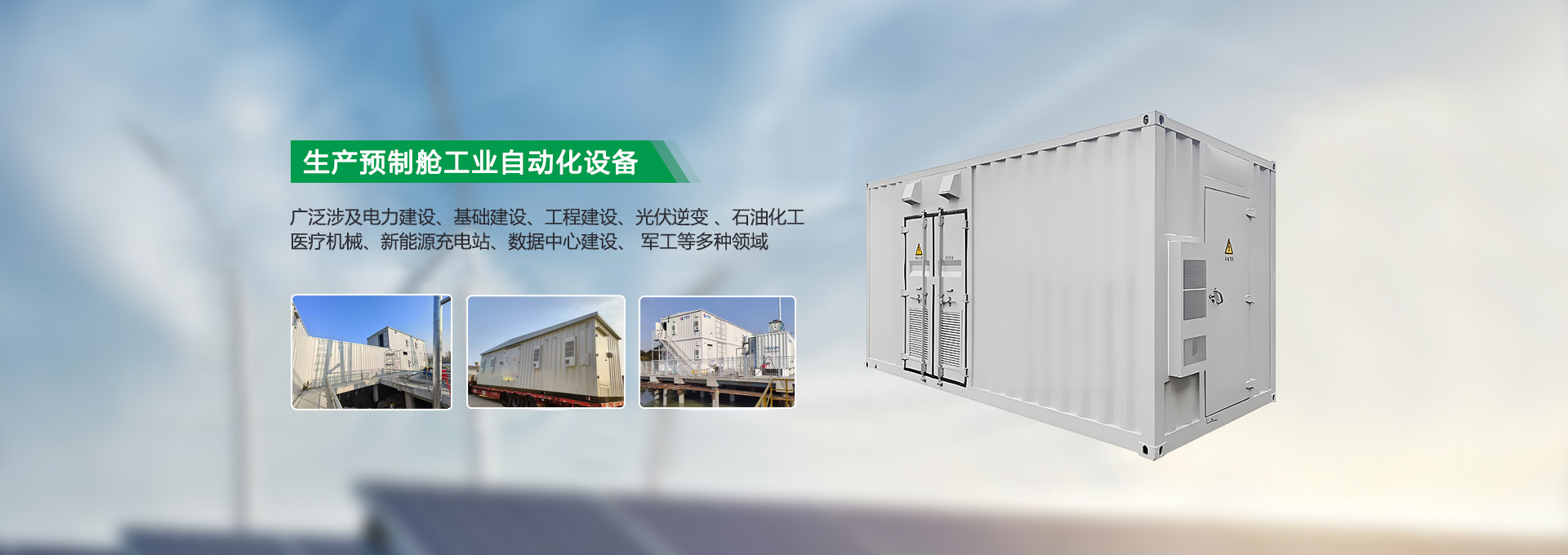 生产制造储能发电箱、光伏逆变箱、数据中心箱、电力设备箱、环保设备箱、军用设备箱、等多类特种集装箱。